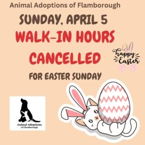 We receive no financial assistance from any government body. We operate solely on private donations, membership dues and continual fundraising efforts. All areas of Animal Adoptions of Flamborough rely on the participation of volunteers.